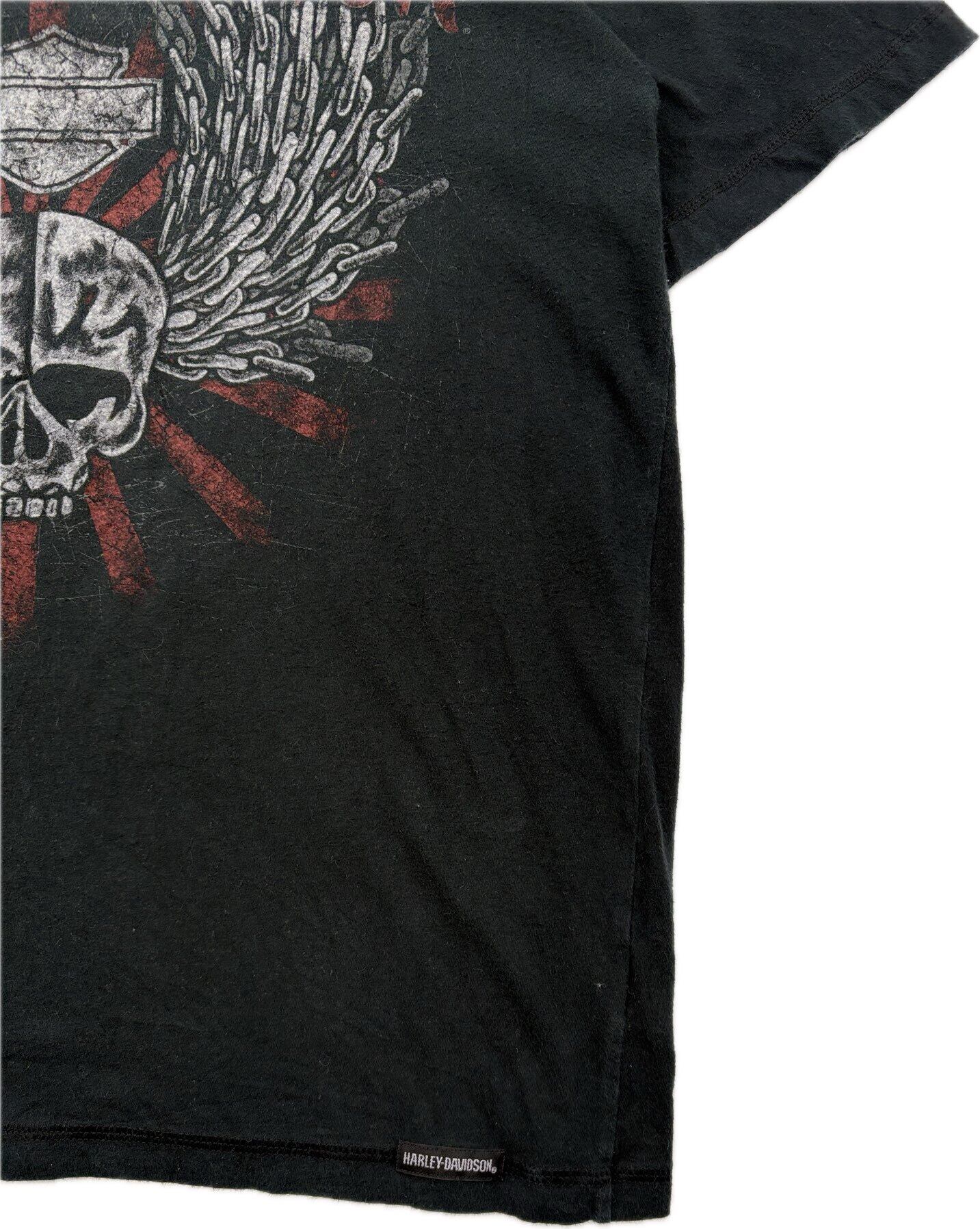 スカル×ウィング×チェーンというハーレーらしさ満点のグラフィックが大胆にプリントされた1枚。