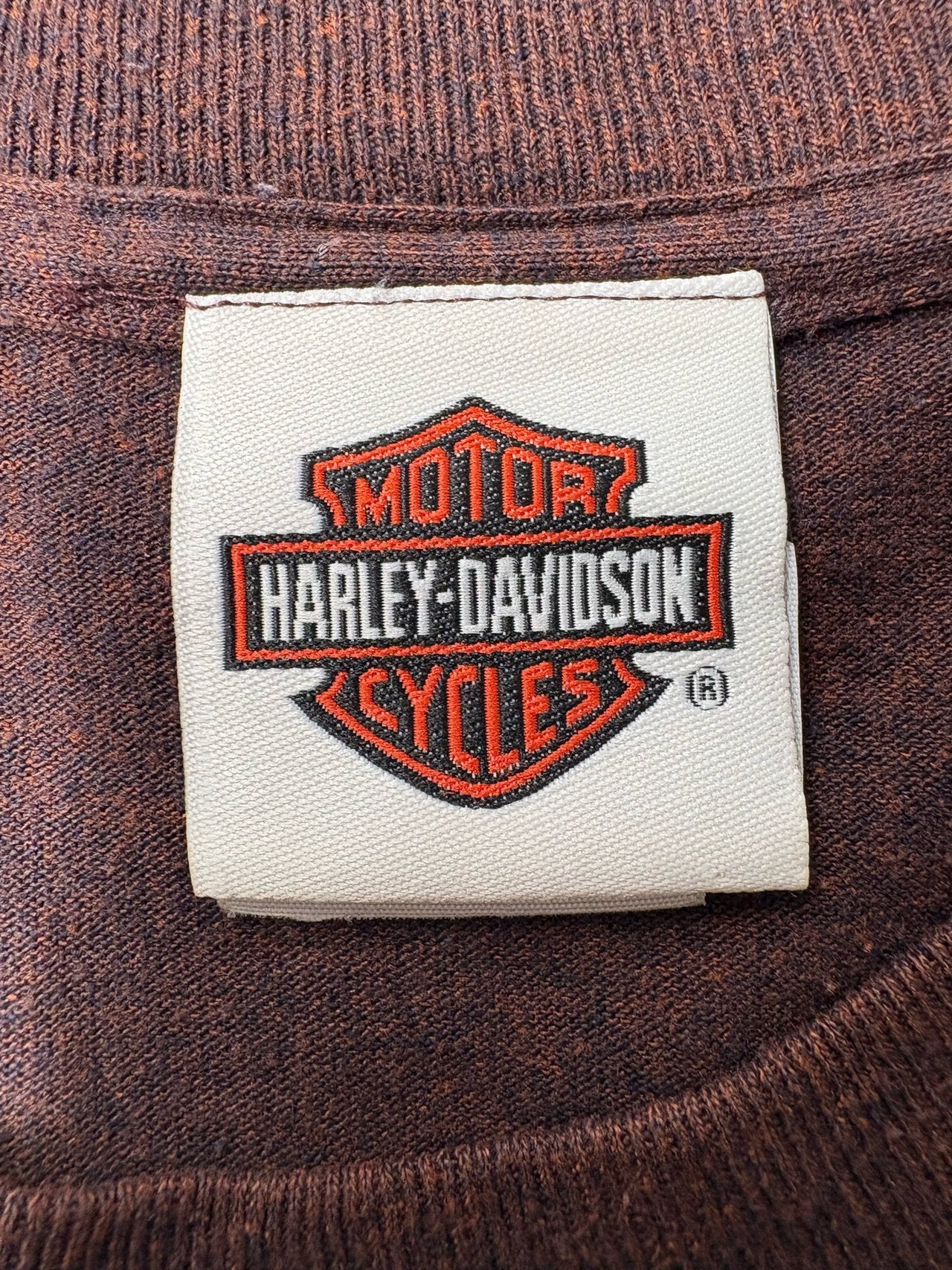 フロントはハーレーTの中でも人気の高いバッファロースカルとHARLEYロゴを大胆にプリント。