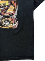 フロントには立体的なイエローのスプリントカーが描かれ、バックにはさらに大きなグラフィックで2台のマシンが疾走する様子が派手にプリント。
