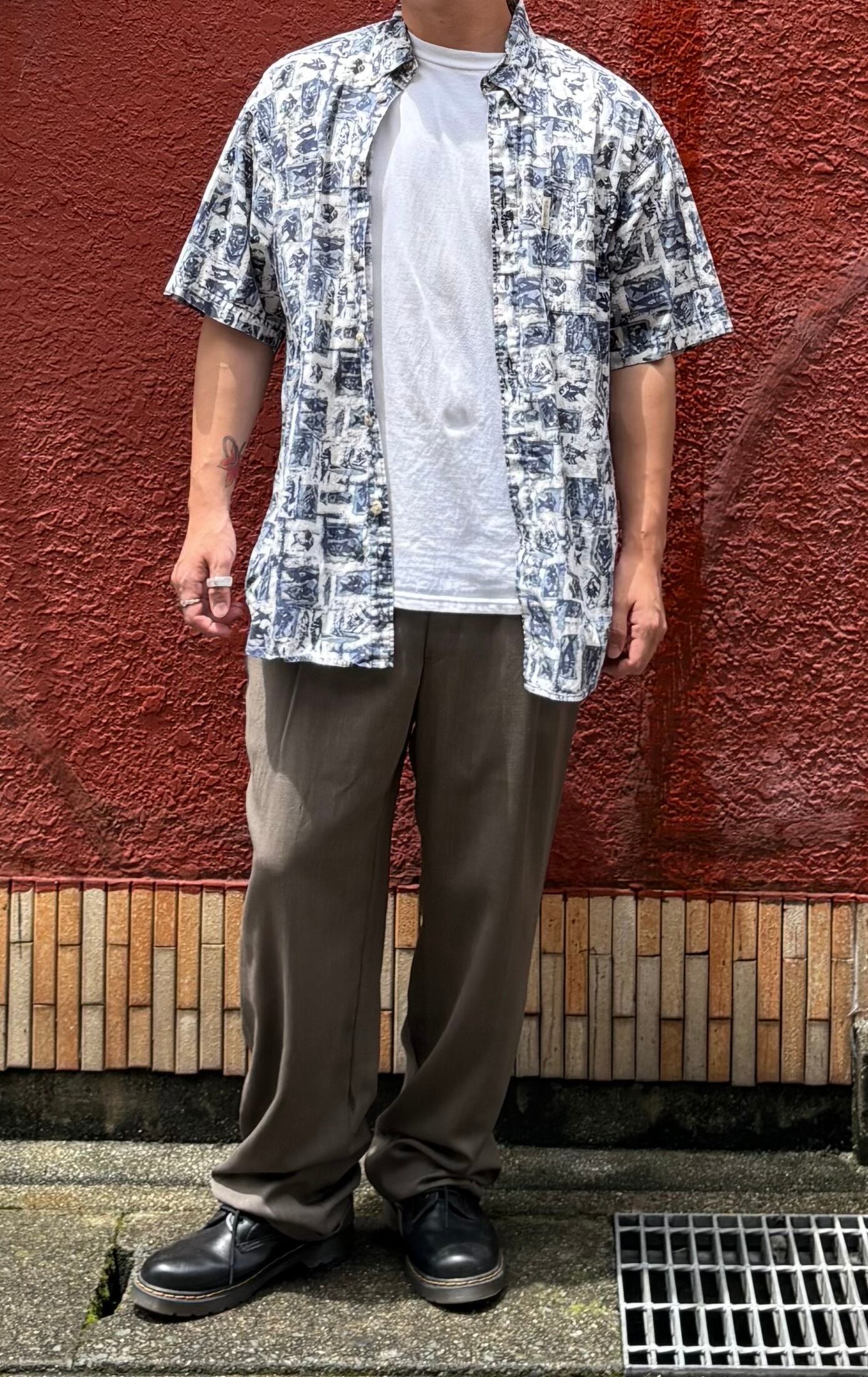 アウトドアブランドColumbiaの遊び心あるアートプリントが目を引く総柄シャツ。