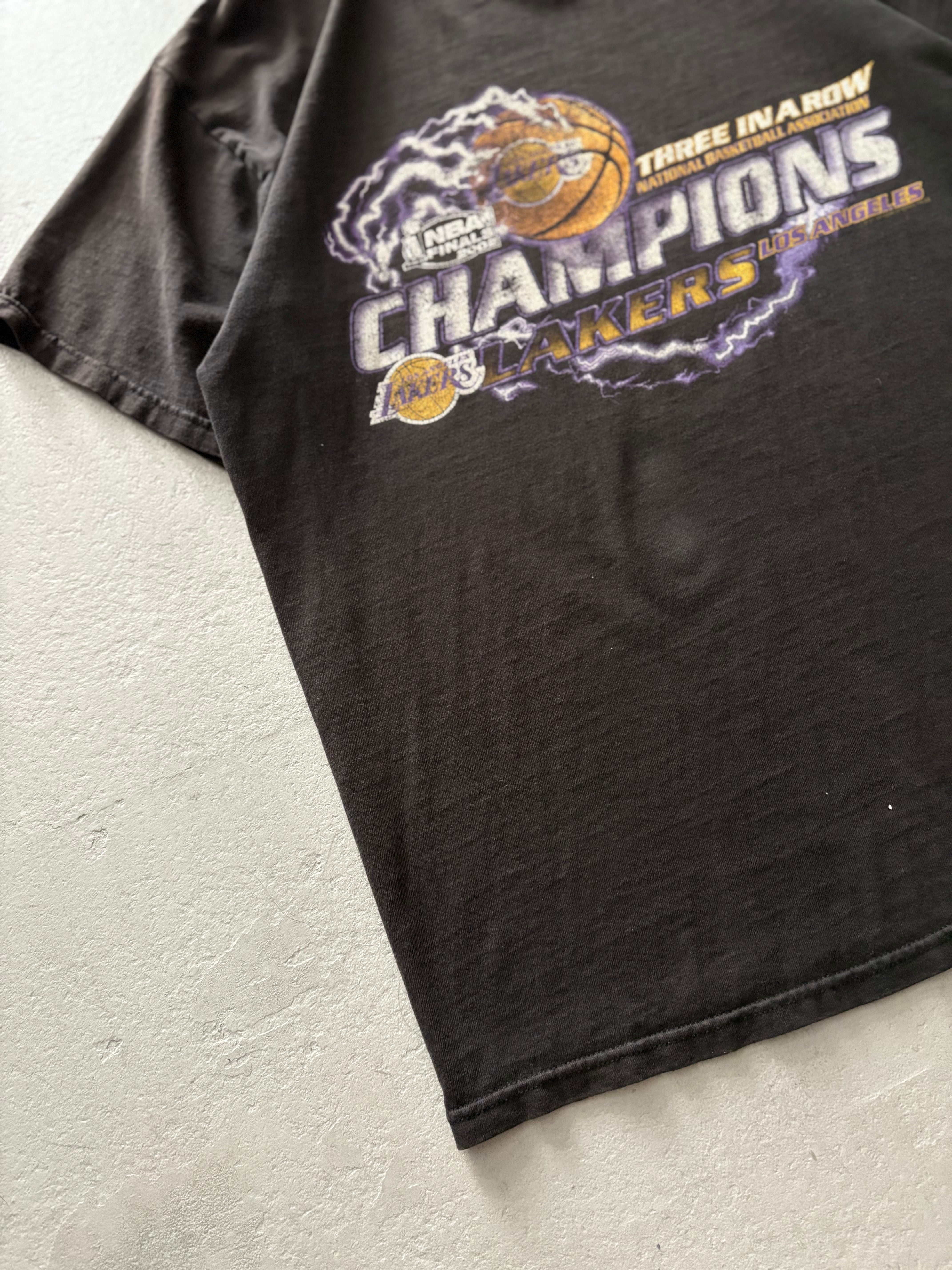 2000年・2001年・2002年と、3連覇を達成したロサンゼルス・レイカーズの偉業を記念して作られた、オフィシャルのTシャツ。
