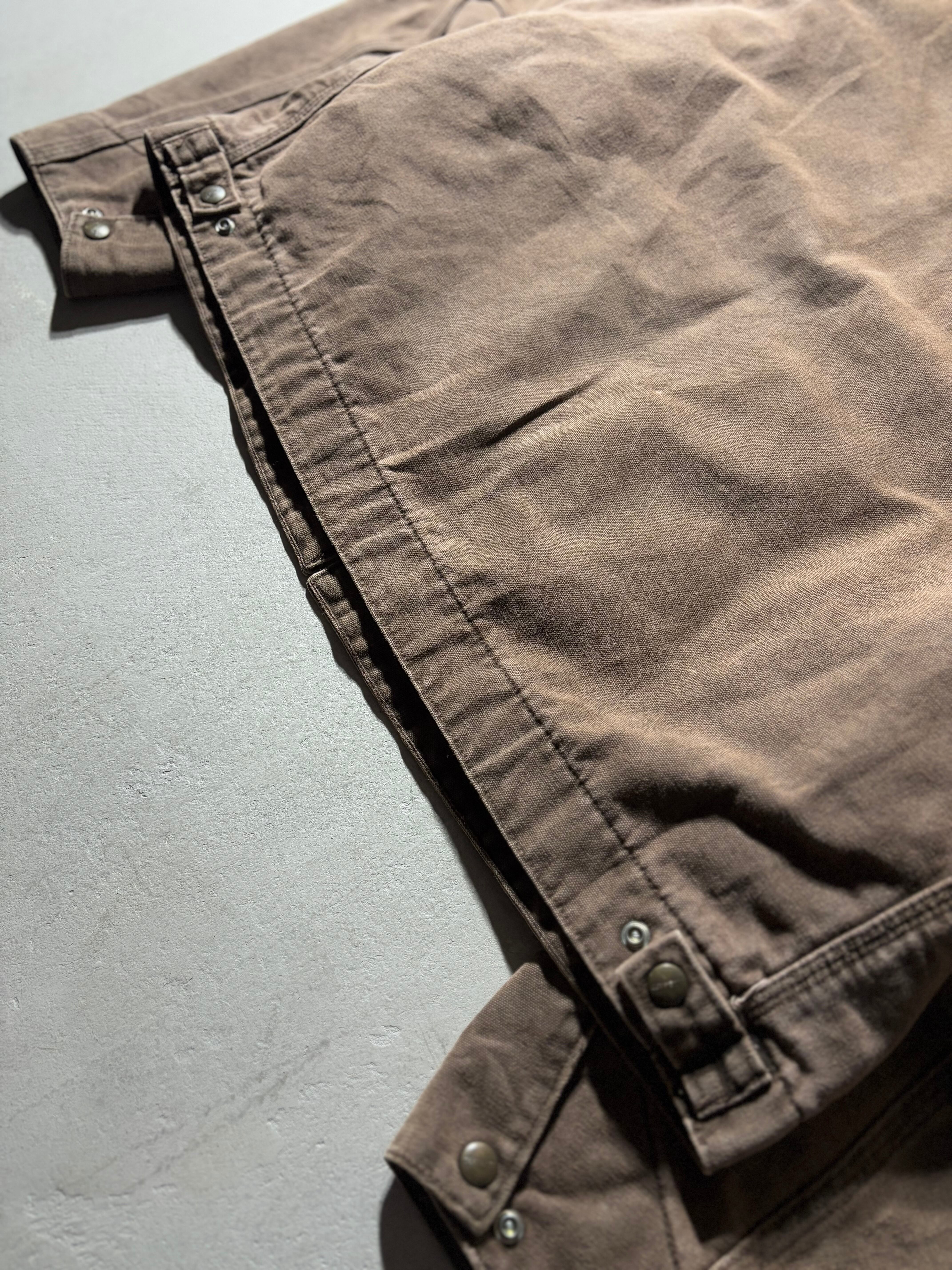 しっかりとしたダック生地に、絶妙にフェードしたブラウンカラーが雰囲気抜群の1着です。