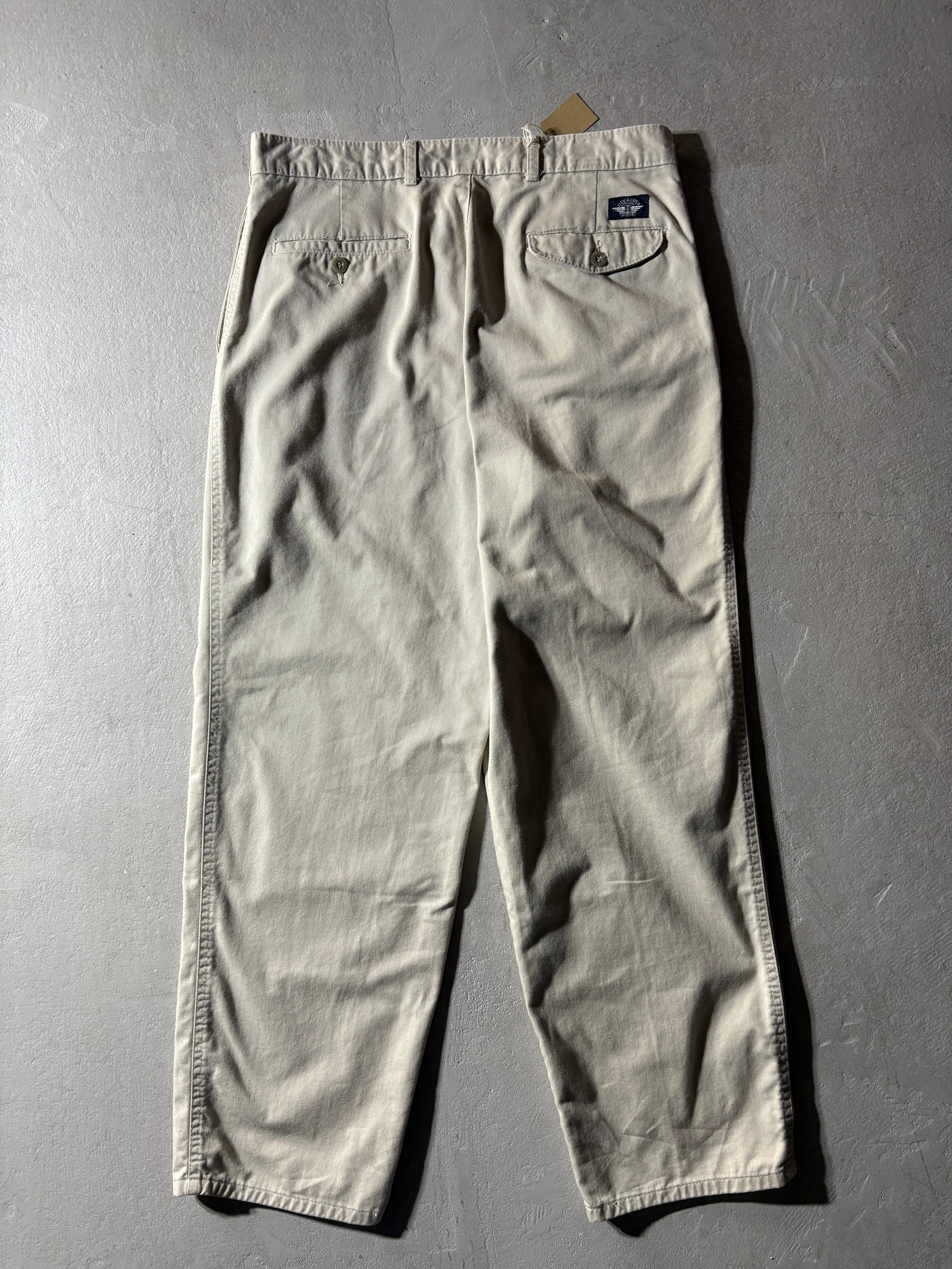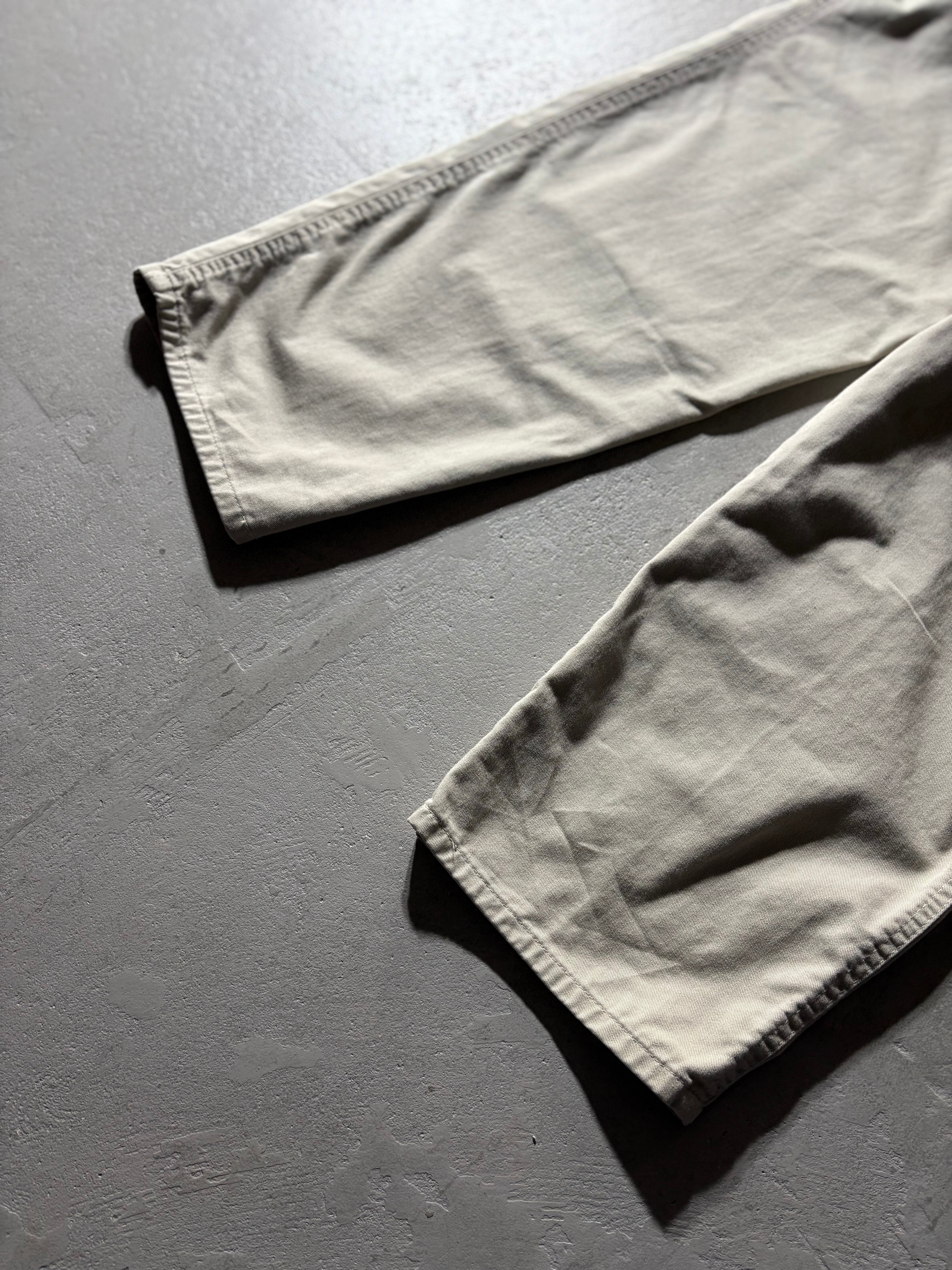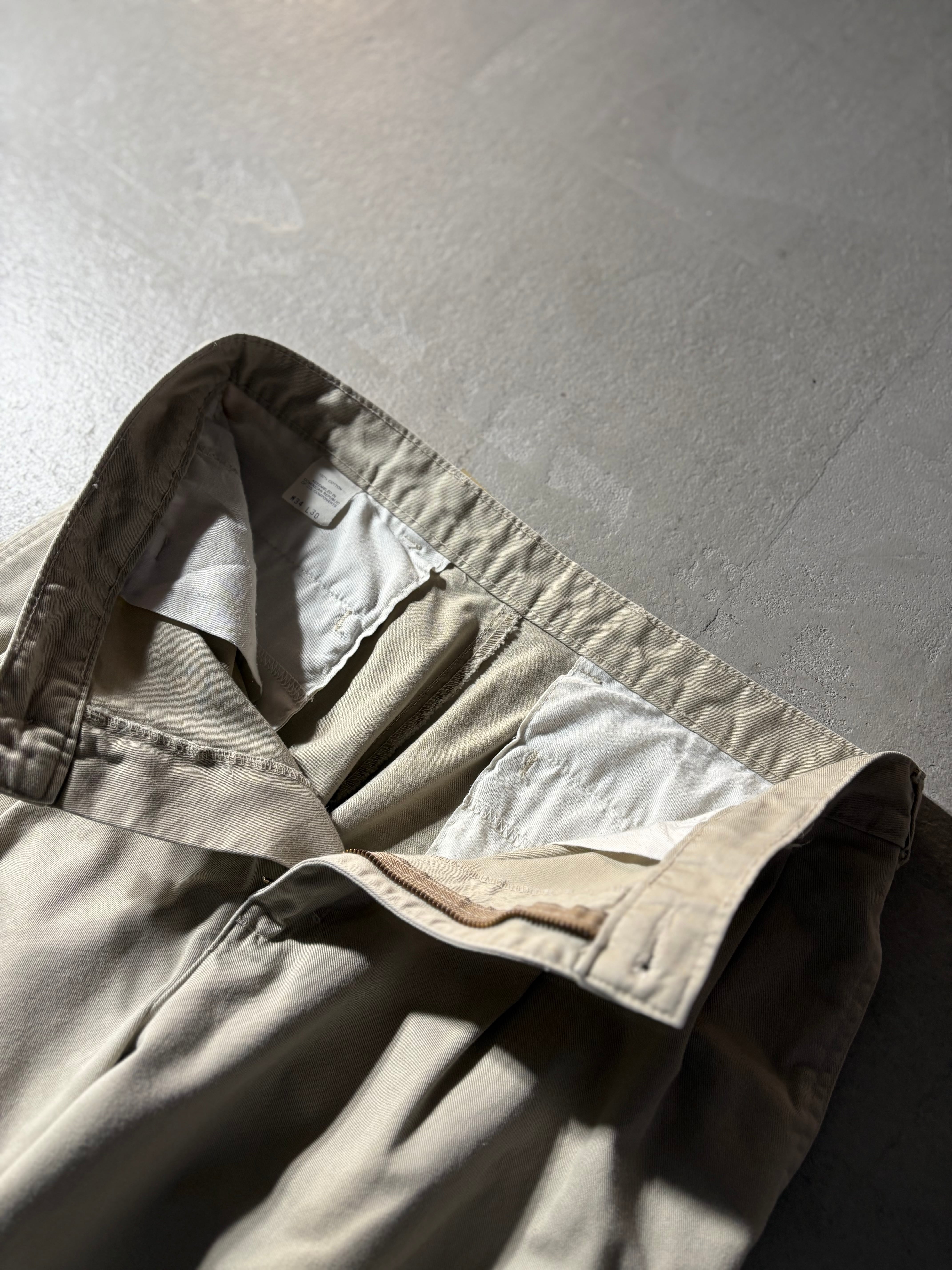 実寸にてウエスト約84cm、股下約72.5cm、ワタリ幅も太めで、全体的にゆとりあるフィット感。