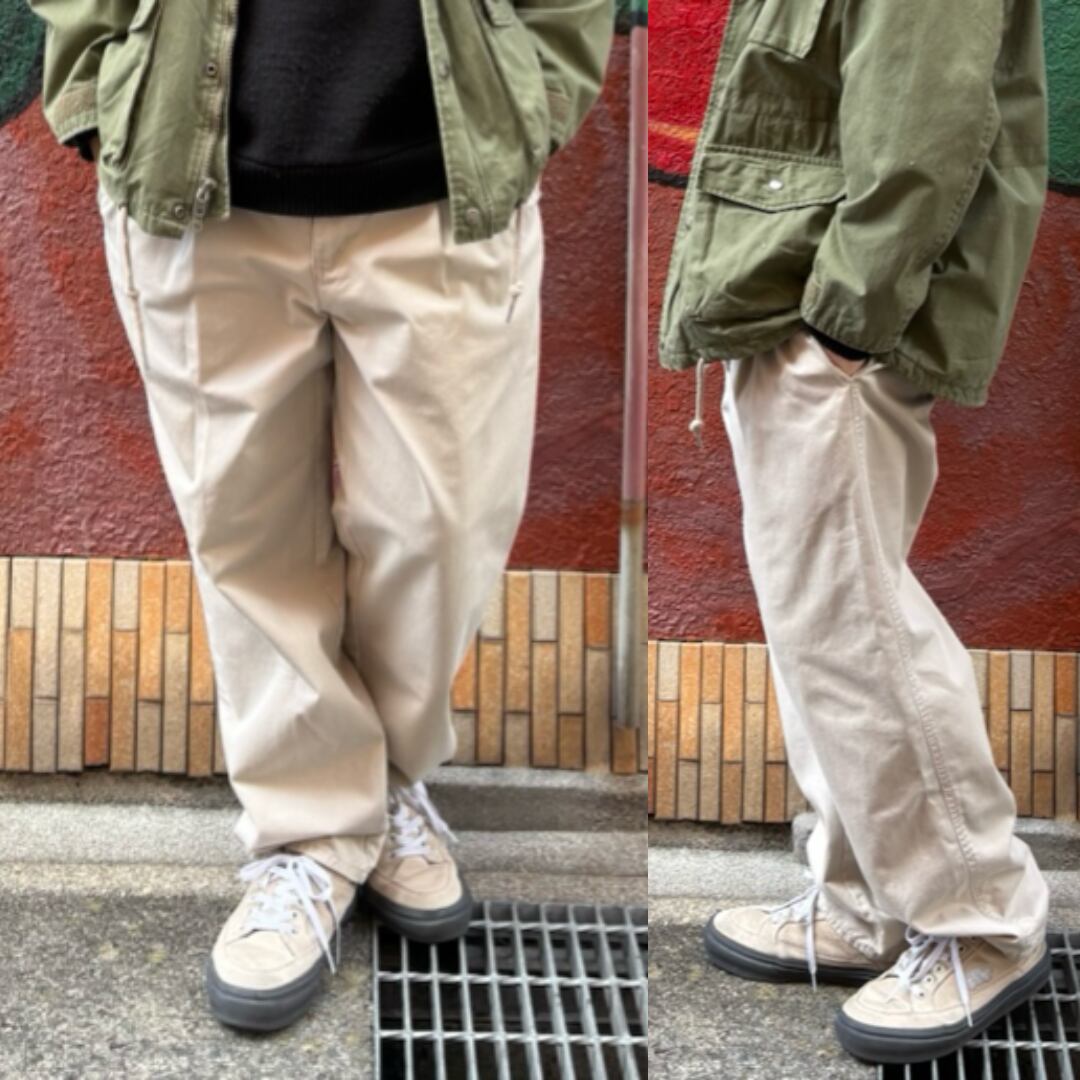 今のスタイリングにもすんなり溶け込む、使い勝手抜群のチノパンツです。