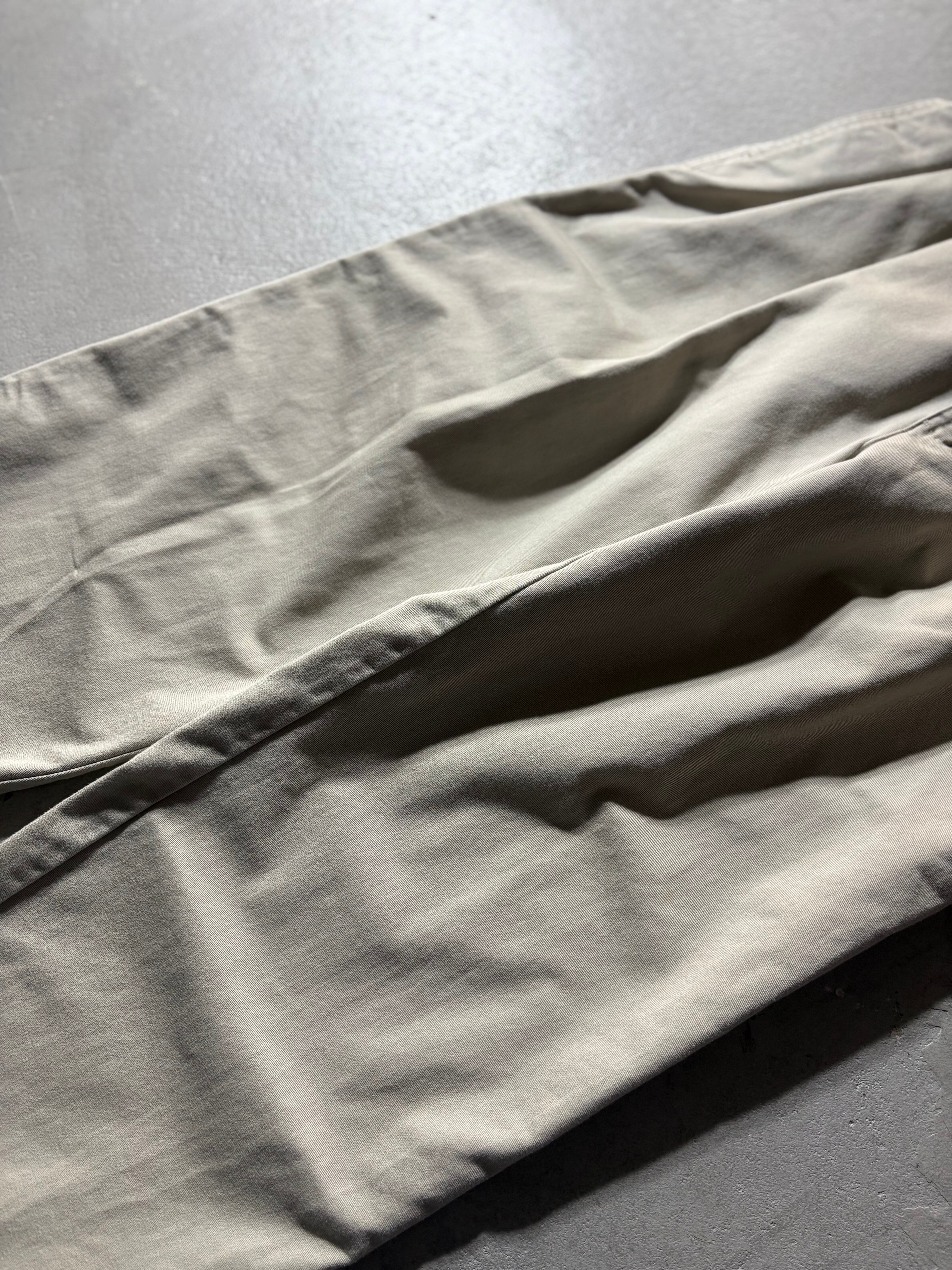 フロントはジッパーフライ仕様、深めの2インプリーツが入り腰周りにゆとりを持たせつつ、裾に向かって程よくテーパード。