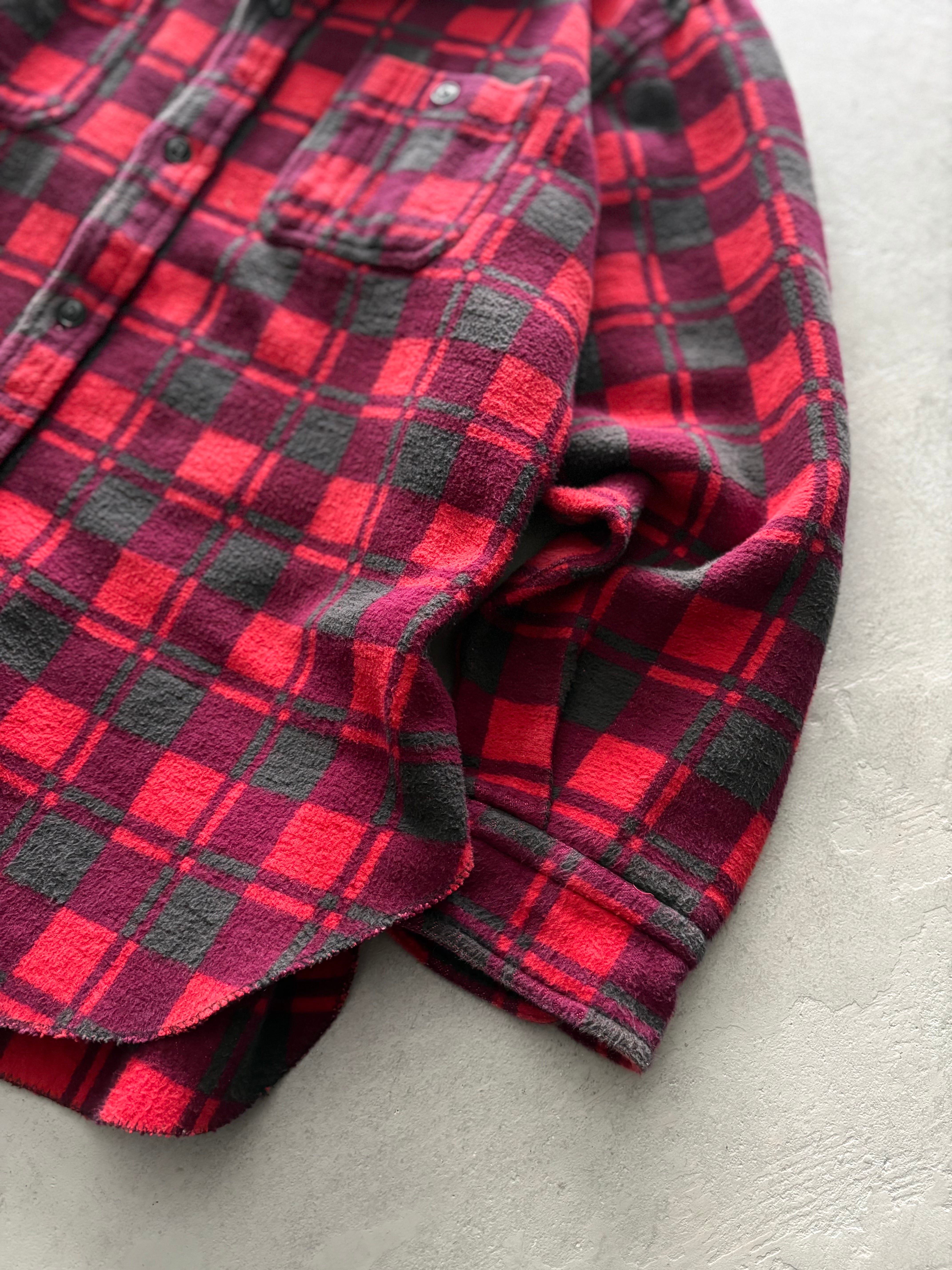 Championのネルシャツで、裾には当時のディテールであるマチ付き仕様が残っています。