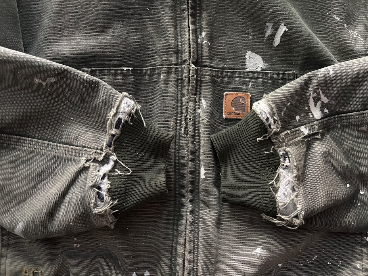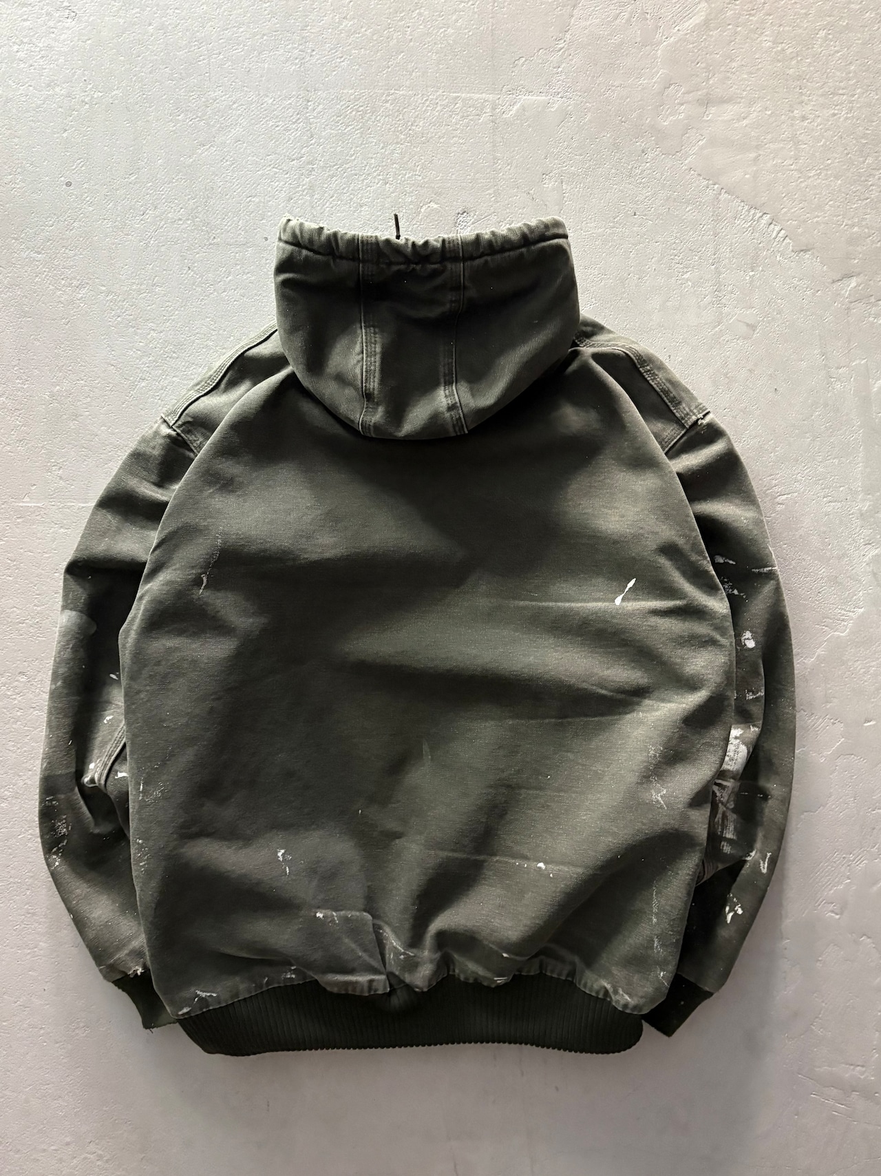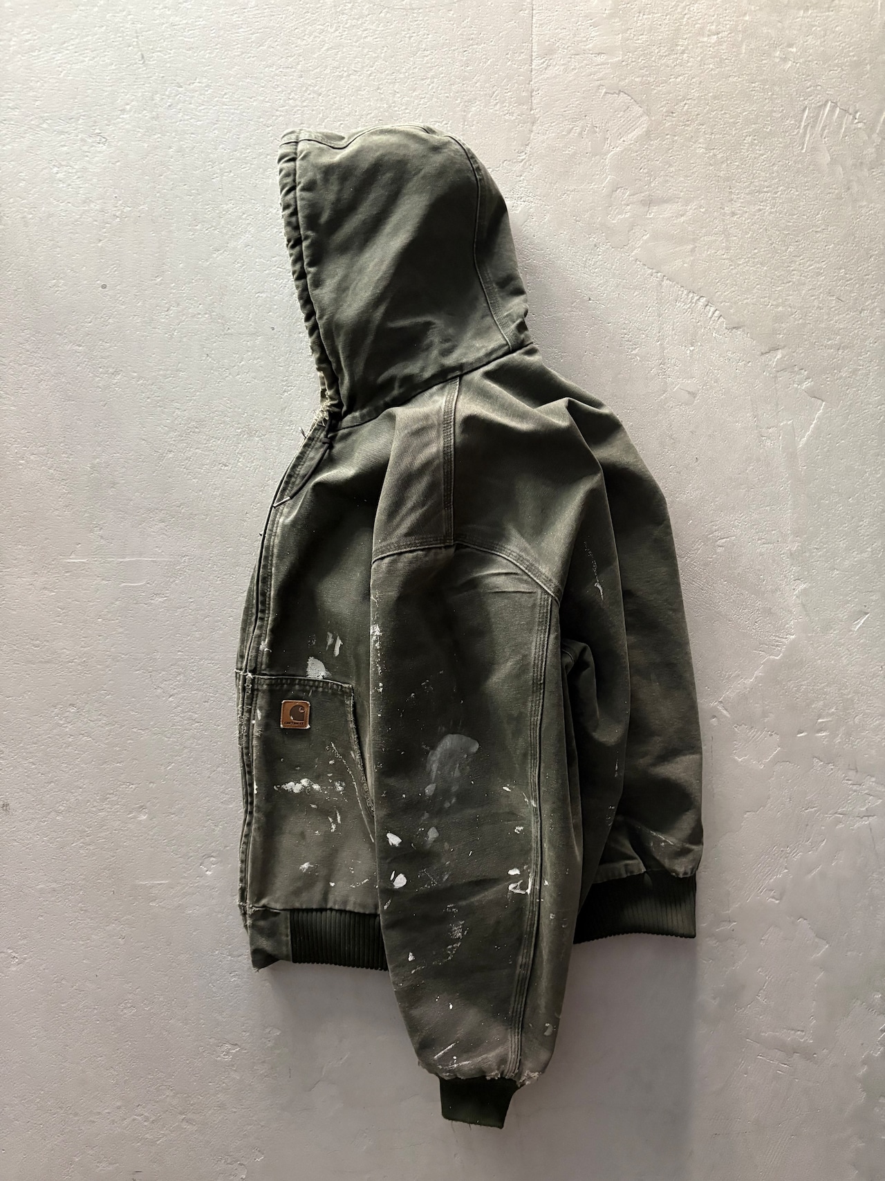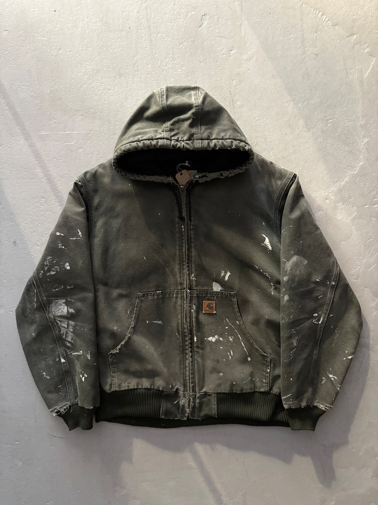 深みのあるオリーブグリーンのボディに、経年変化で生まれたフェード感、随所に見られるペイント跡やアタリが加わり、完璧な雰囲気になっています。